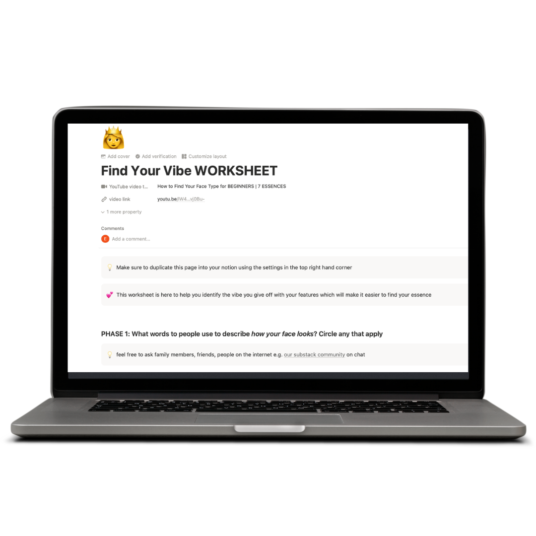 Find Your VibeWORKSHEET Get my FREE work sheet to uncover your face typeI will also be sending you weekly emails with style lessons, methods and systems to get you closer to your dream style. VIEW HERE